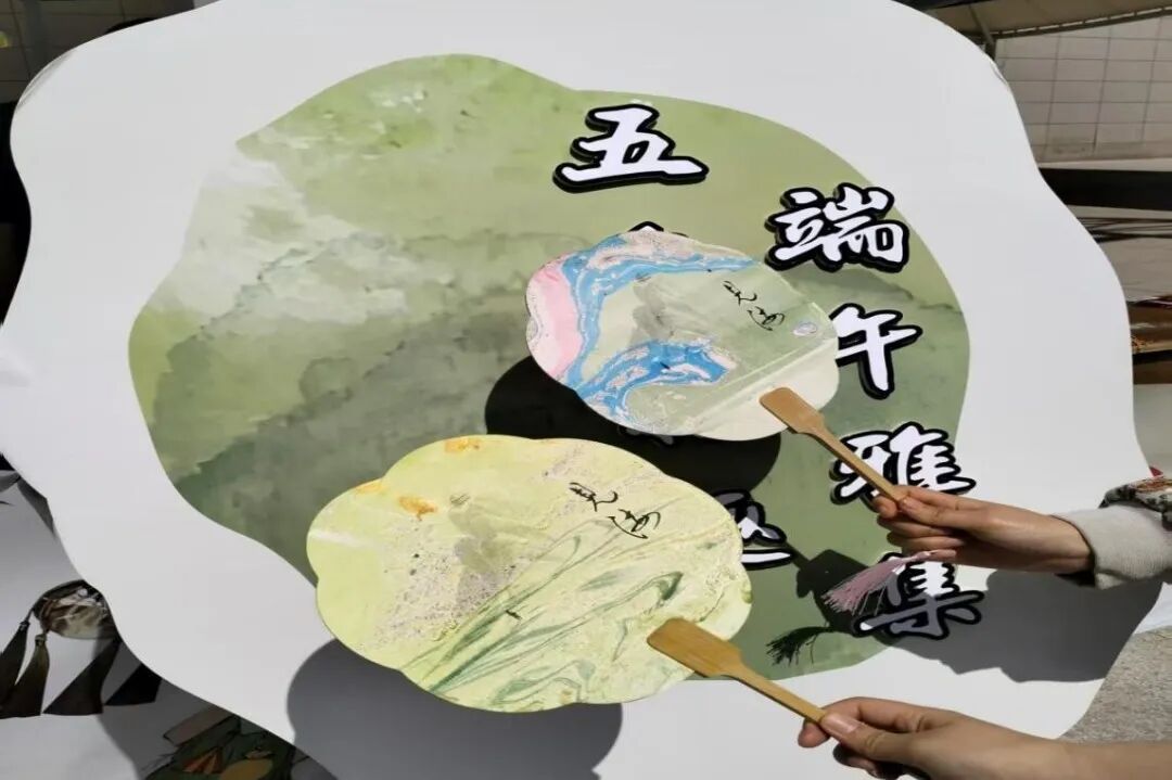活动尾声,活动参与人员手持作品合影,并集体诵读端午祝词,在仪式感中传递安康祝福。此次活动通过沉浸式体验与互动实践,让文化传承摆脱单向灌输模式,转化为可体验、可参与、可创造的美育实践。让同学们在竹编风铃的清脆声中触摸传统肌理,在漆扇晕染的纹路里邂逅东方美学,让端午文化从“典籍里的故事”化作“青春里的记忆”。