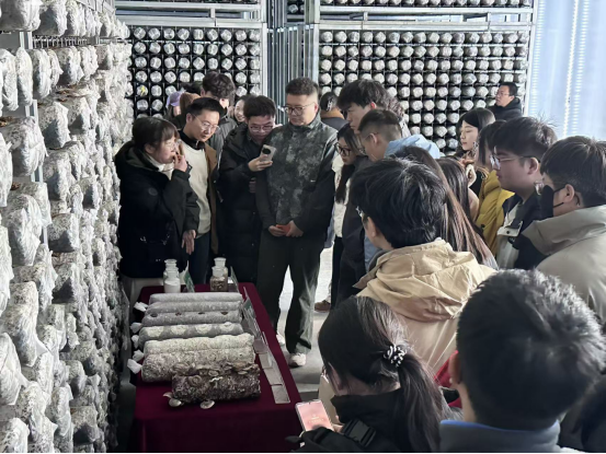 研学实践活动中,师生团队实地参观了企业菌棒生产车间与种植基地,详细了解食用菌产业的机械化生产流程、循环农业体系及市场运营模式。企业技术负责人围绕“三元结构”农业产业体系,现场讲解了种植、养殖与菌业协同发展的技术路径与生态效益。企业负责人介绍了公司在推动区域农业现代化与可持续发展方面的积极探索。田万慧介绍了学院农业硕士农业管理及农村发展两个领域的人才培养目标与实习实践要求。活动期间,双方围绕学生实习实践、项目合作、课程共建等方面交换意见,并达成多项合作共识。